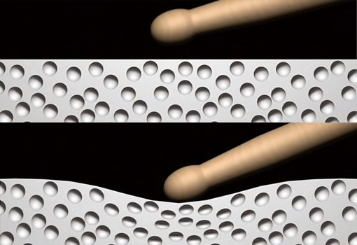 The XP80 has three zones, allowing it to react like an acoustic drum. Striking the XP80 on the TCS surface produces a head sound; striking opposite sides of the rim produces different rim sounds.