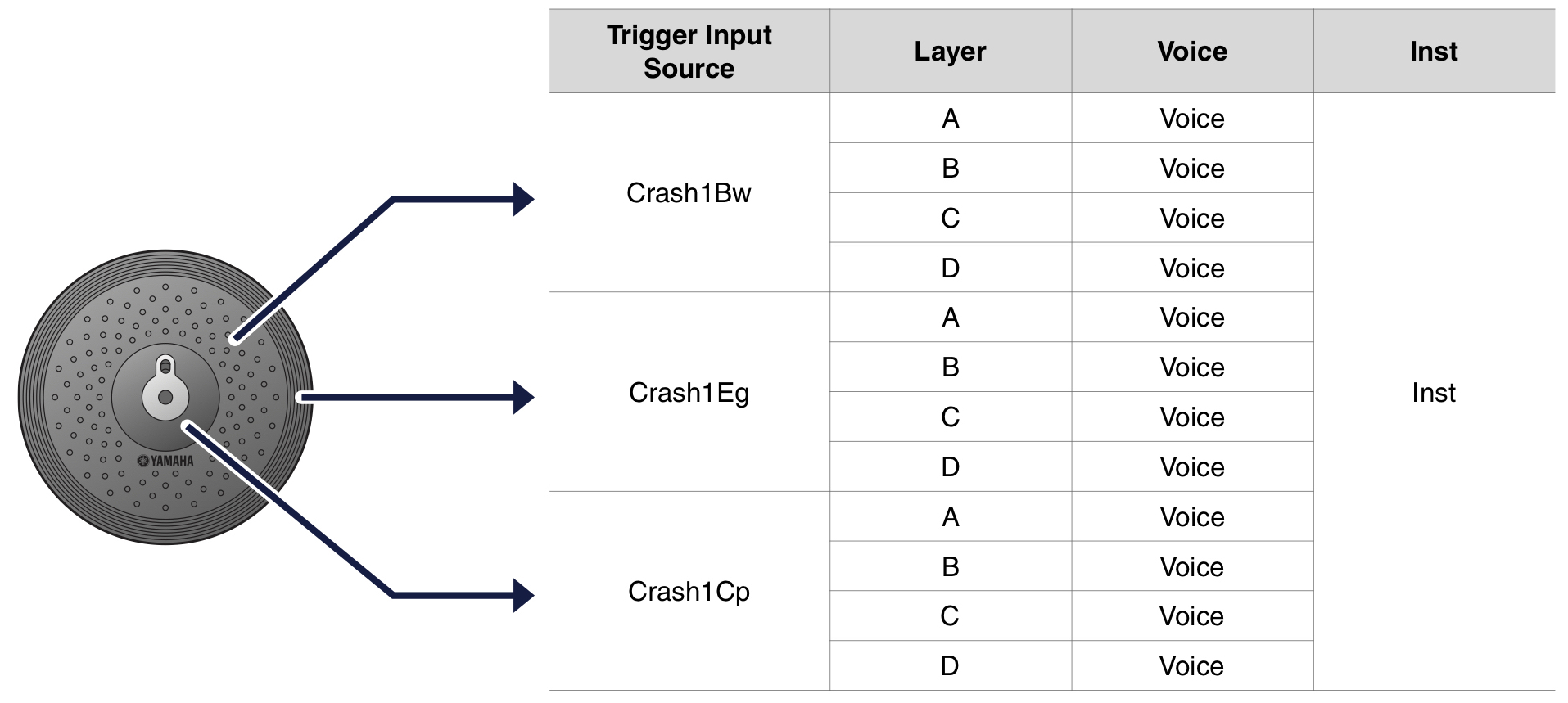 Three-zone construction is also employed in the Yamaha PCY135 13-inch ride cymbal pad included with all DTX6 Series kits. In addition, it offers positional sensing, which permits different sounds to be played from different areas of the pad such as bell, edge or bow — just like a real cymbal. As with the XP80, each zone of the PCY135 can layer up to four voices, with different velocity sensitivity for each layer.