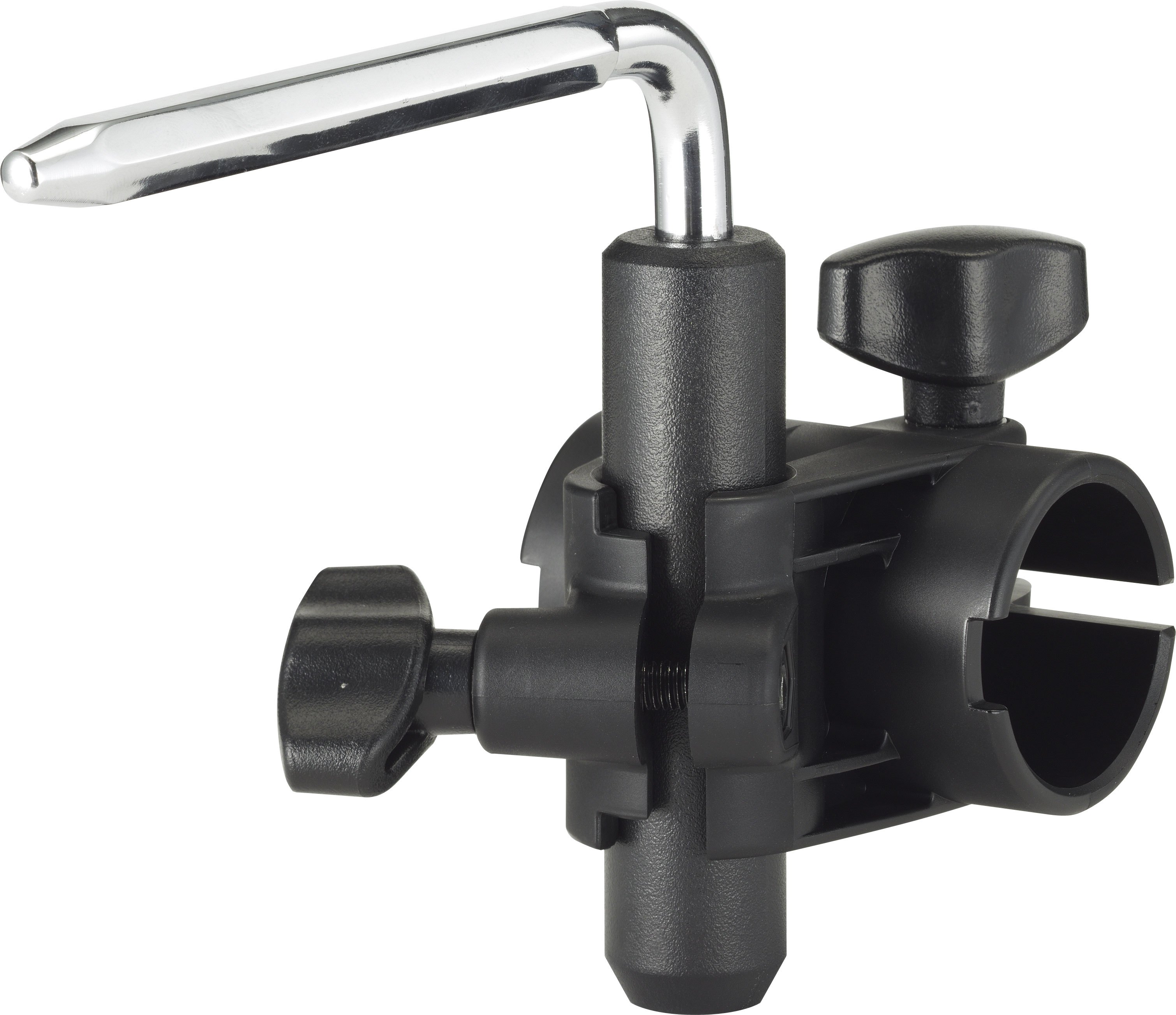 A Yamaha CL-940B ball clamp is used for the snare holder. It mounts on an independent rack arm, enabling adjustment across a wide range of positions, so you can set the snare pad precisely where you want it.