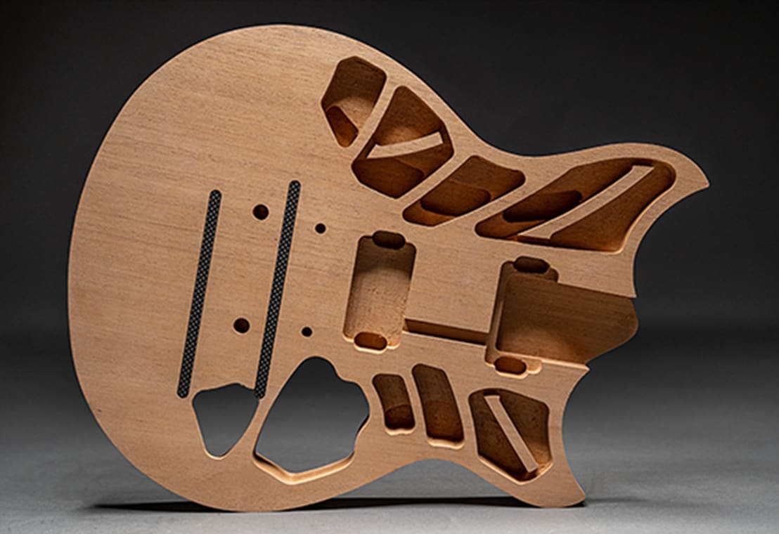 Electric guitars with chambered bodies essentially combine the best of both worlds. Carved within their solid bodies are a series of finely tuned chambers to change the resonant properties of the wood and alter the tonality in a specific way. Second generation Yamaha Revstar guitars and the recently released Pacifica Standard Plus and Professional models fall into this category; all utilize the signature Yamaha Acoustic Design process to precisely shape tone and increase resonance while at the same time reducing weight and optimizing balance.