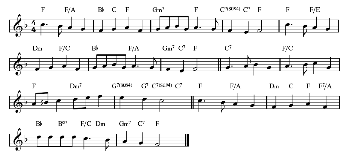 Once you’re comfortable with that, you can fill in the rest of the melody, say like this: