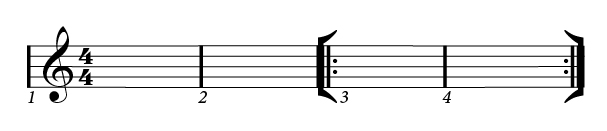 Bear in mind that repeat signs don’t always have to occur at the beginning of a line of music. For example, you might see this: