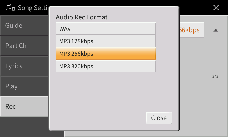 If you plan to share this file on social media or email it to friends and family, you will probably want to save it in an MP3 format. To set the Clavinova output to the desired audio format: