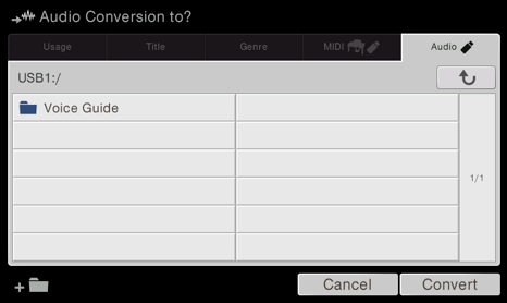 - When the song is done playing, it will automatically save to the USB or User drive in the Audio folder with the same song title as your MIDI file.